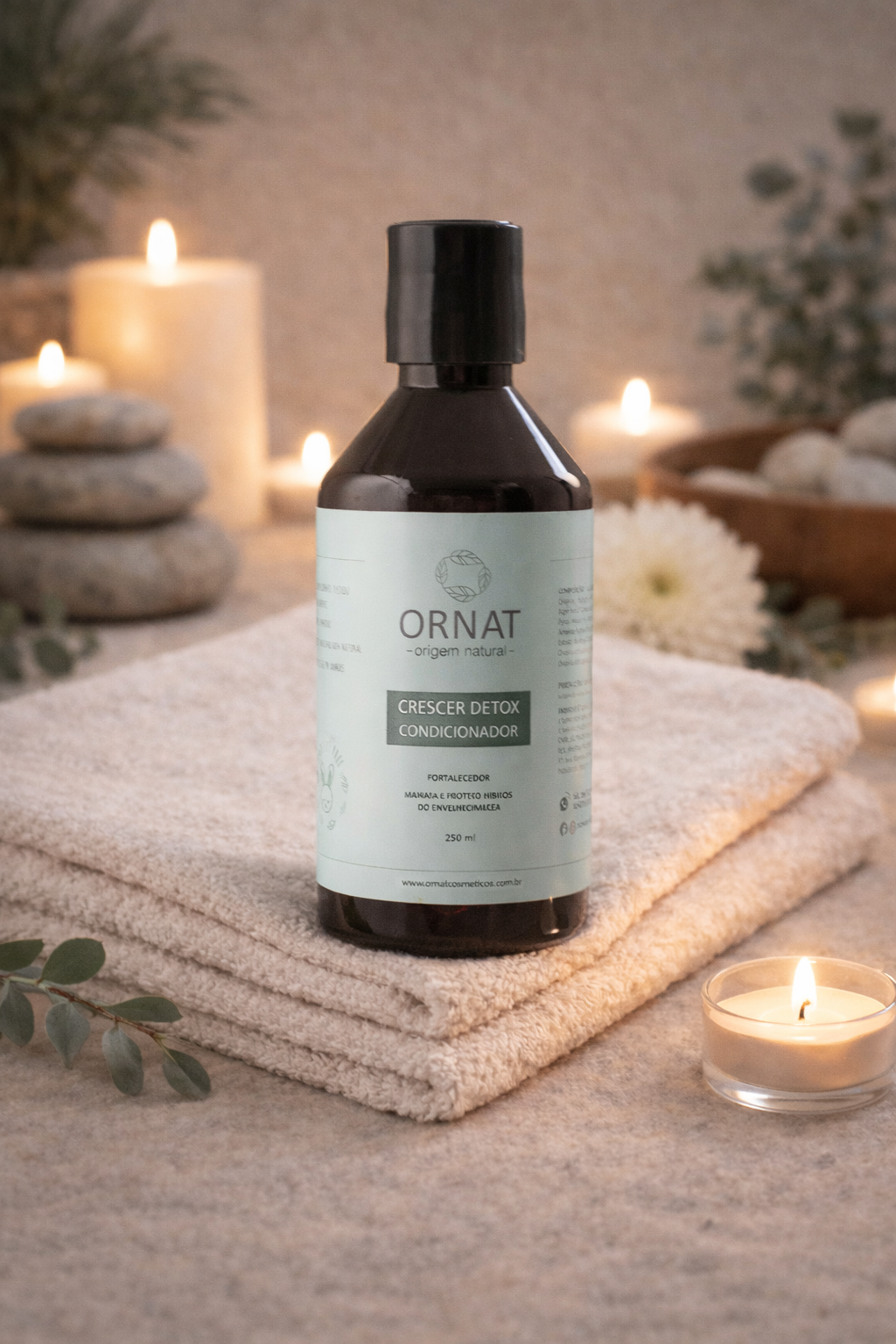 O Condicionador Crescer Detox ORNAT promove a desintoxicação da fibra, realinha a cutícula, disciplina o cabelo, combate o envelhecimento dos fios e diminui o frizz. Promove uma hidração e maciez pela ação antioxidante. Pode ser usado como máscara. Indicado para para todos os tipo de cabelo. PRINCIPAIS ATIVOS Alecrim, Menta, Arnica, Bamboo, Polissacarídeos do Tamarindo, Complexo de Ômega 3 e 6 (pH 3,8). BENEFÍCIOS Hidratante e condicionante Efeito disciplinante Combate ao envelhecimento dos fios