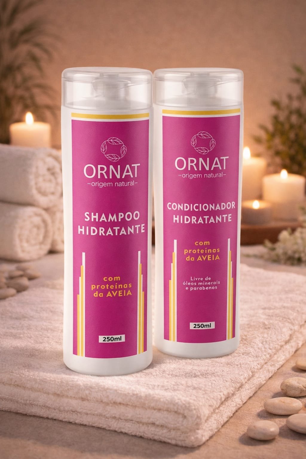 O Kit Ornat Hidratação com Proteínas da Aveia reúne o Shampoo Hidratante e o Condicionador Hidratante para uma rotina completa de cuidado capilar. Desenvolvido para limpar, hidratar e condicionar os fios, o kit ajuda a deixar o cabelo mais macio, suave e com aspecto saudável desde a lavagem até a finalização.