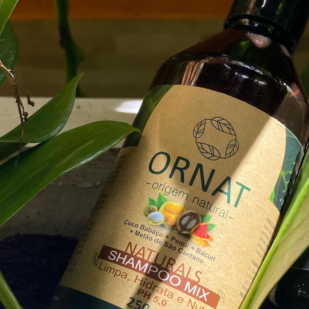 O Shampoo Mix Naturals da ORNAT contém ativos 100% vegetais. Limpam os fios sem ressecar. Promove a diminuição da porosidade e o fortalecimento do fio, deixando brilhoso e nutrido. Contém em sua composição os benefícios do Bacuri, Coco Babaçu, Melão de São Caetano e o Pequi. Livre de parabenos, sulfato, óleo mineral e sal.
